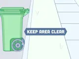 • Trash, Recycling, Grass and Glass carts will go in the street, wheels against the curb for collection